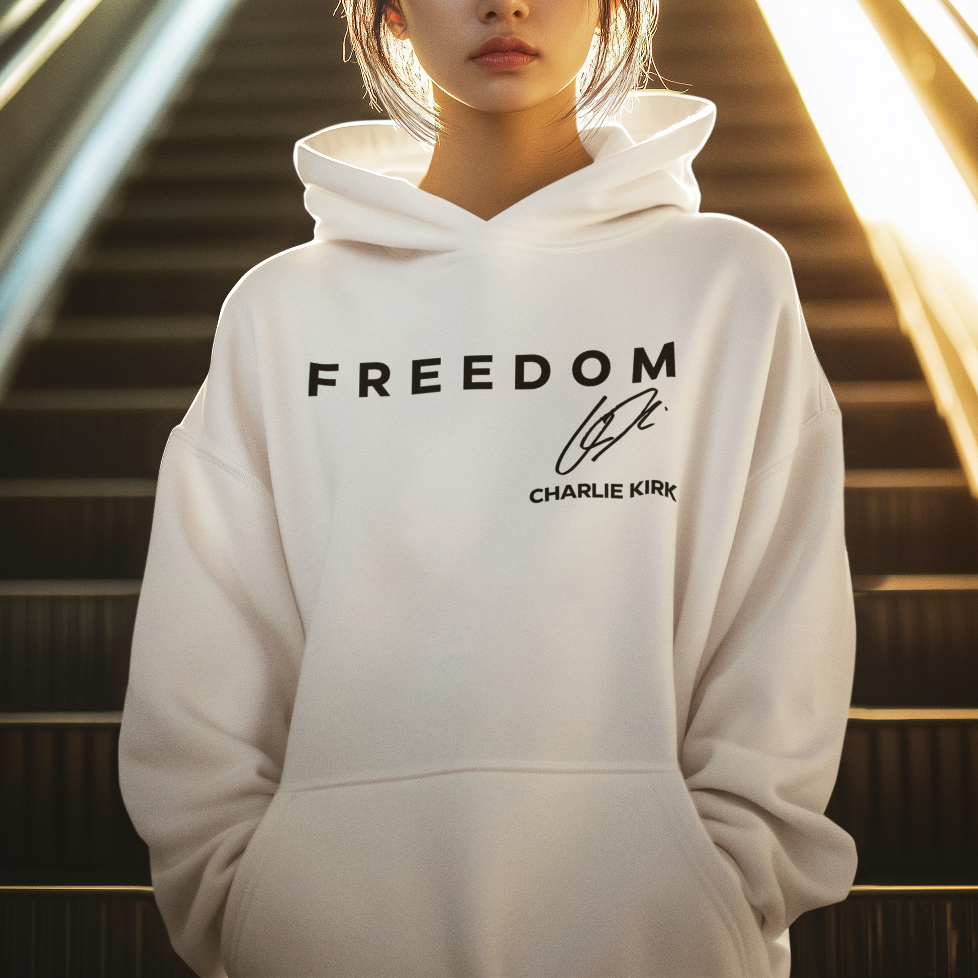 Celebrate National Day of Remembrance on October 14, 2025, with the Freedom – Charlie Kirk Tribute Hoodie. A portion of each sale supports Illinois Chapters of Turning Point USA.